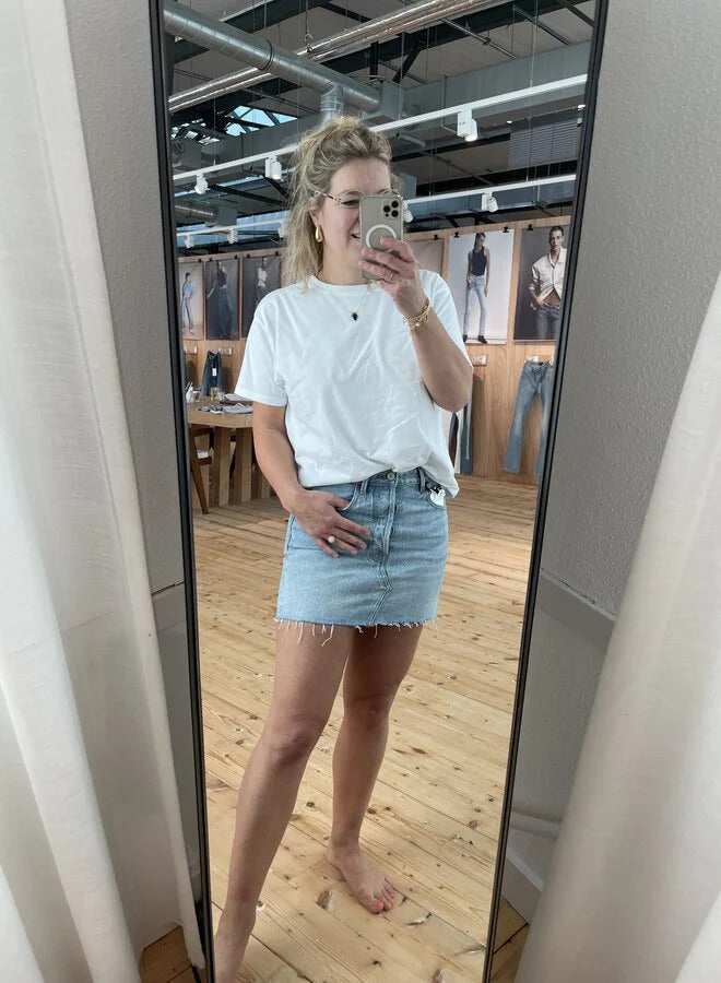 Moderna falda vaquera azul, perfecta para un look casual chic. Confeccionada en algodón de alta calidad, ofrece comodidad y durabilidad. Su favorecedor corte realza la figura sin dejar de ser fácil de combinar. Ideal para todas las estaciones, puede llevarse tanto con deportivas como con tacones. Un básico de moda que no puede faltar en tu armario.